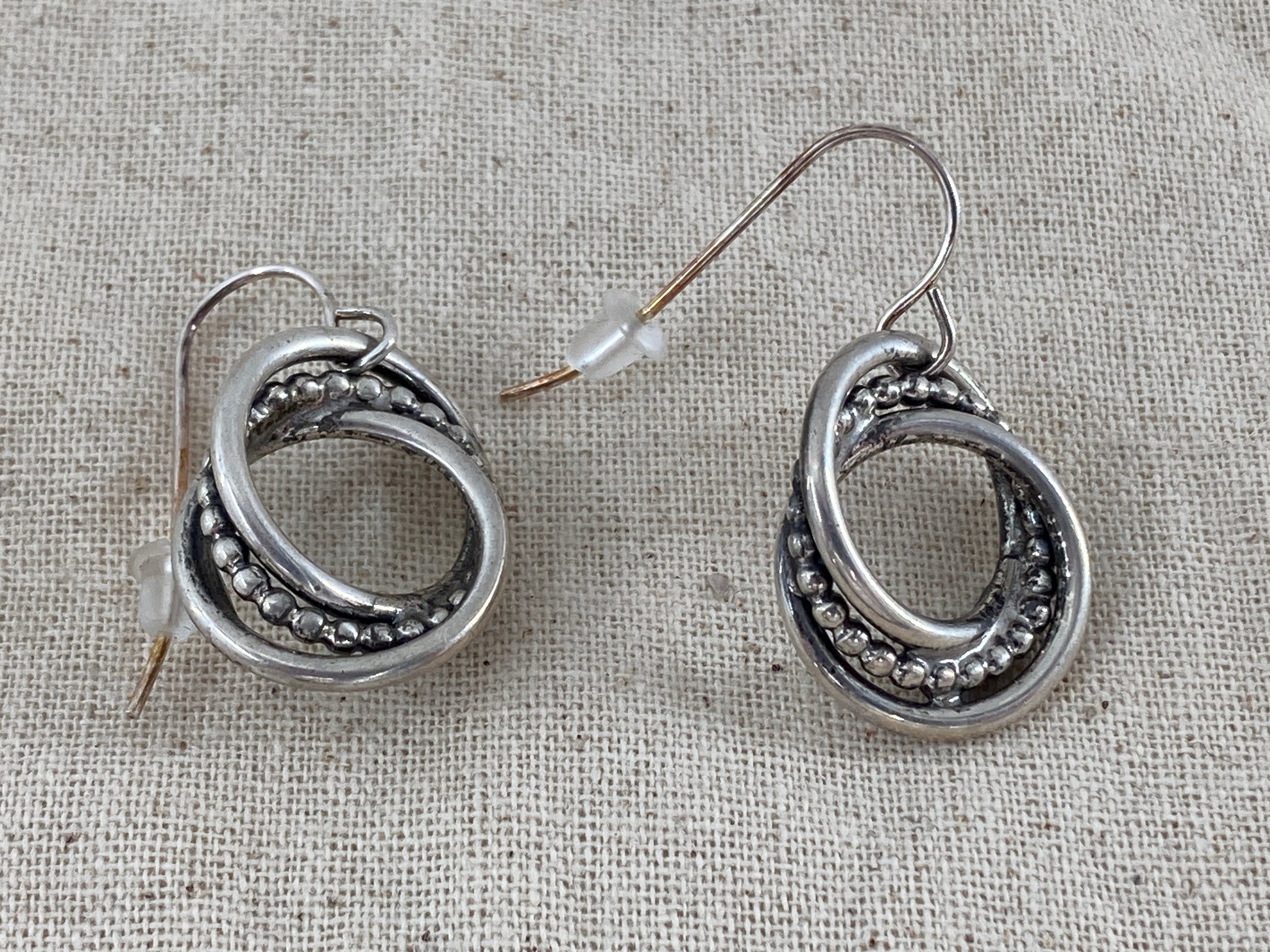 These 3 ring earrings were originally clip-on earrings but they got broken beyond repair. We cleaned them up and paired them with French Hooks for this beautiful dangle style. Timeless, stunning sterling!