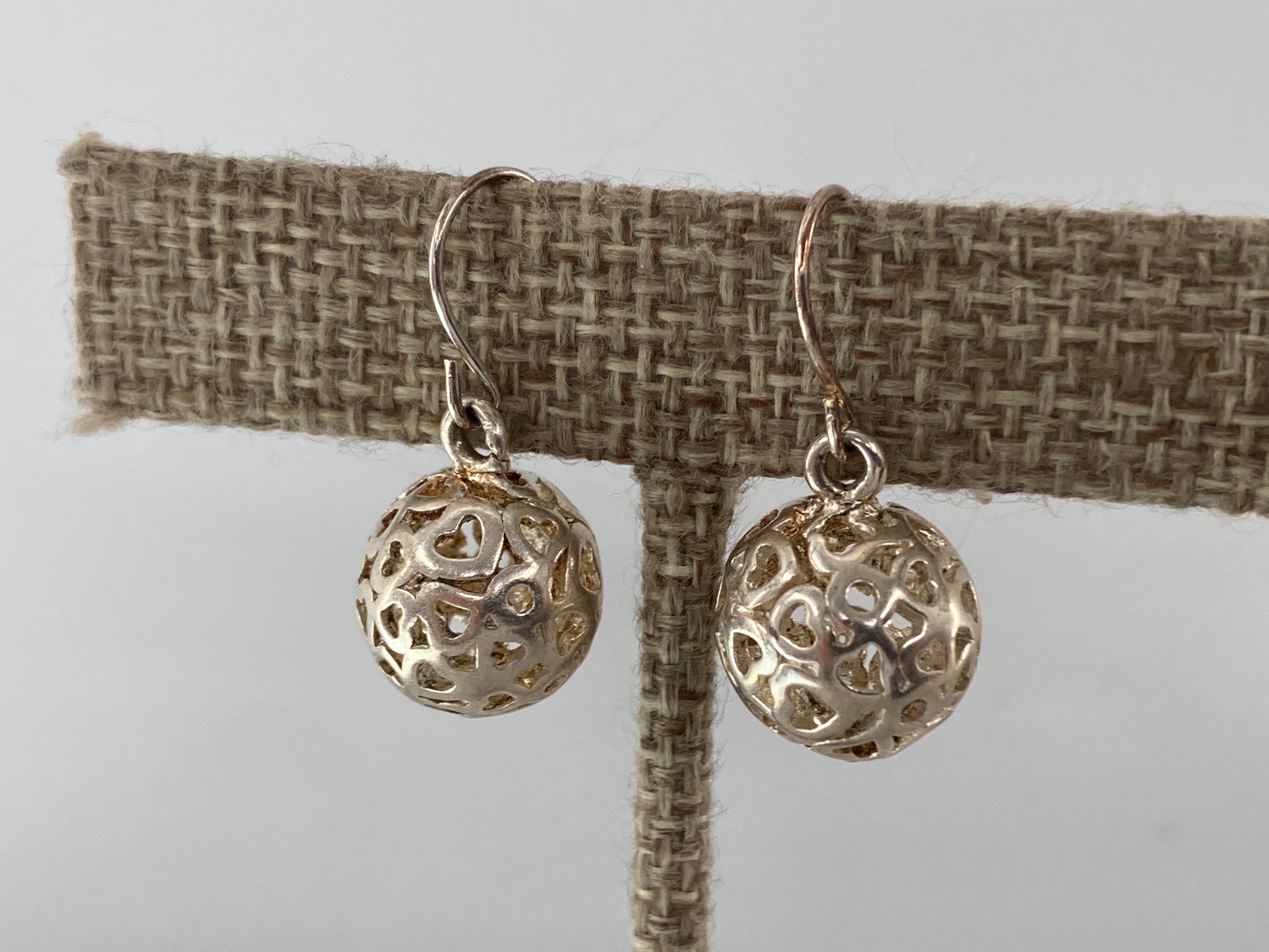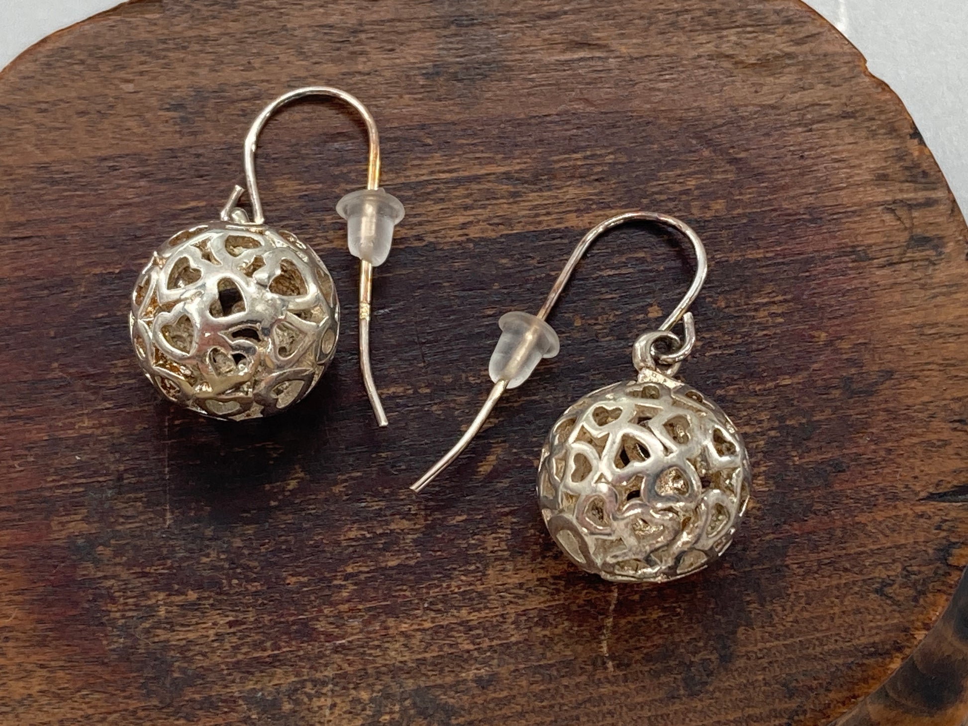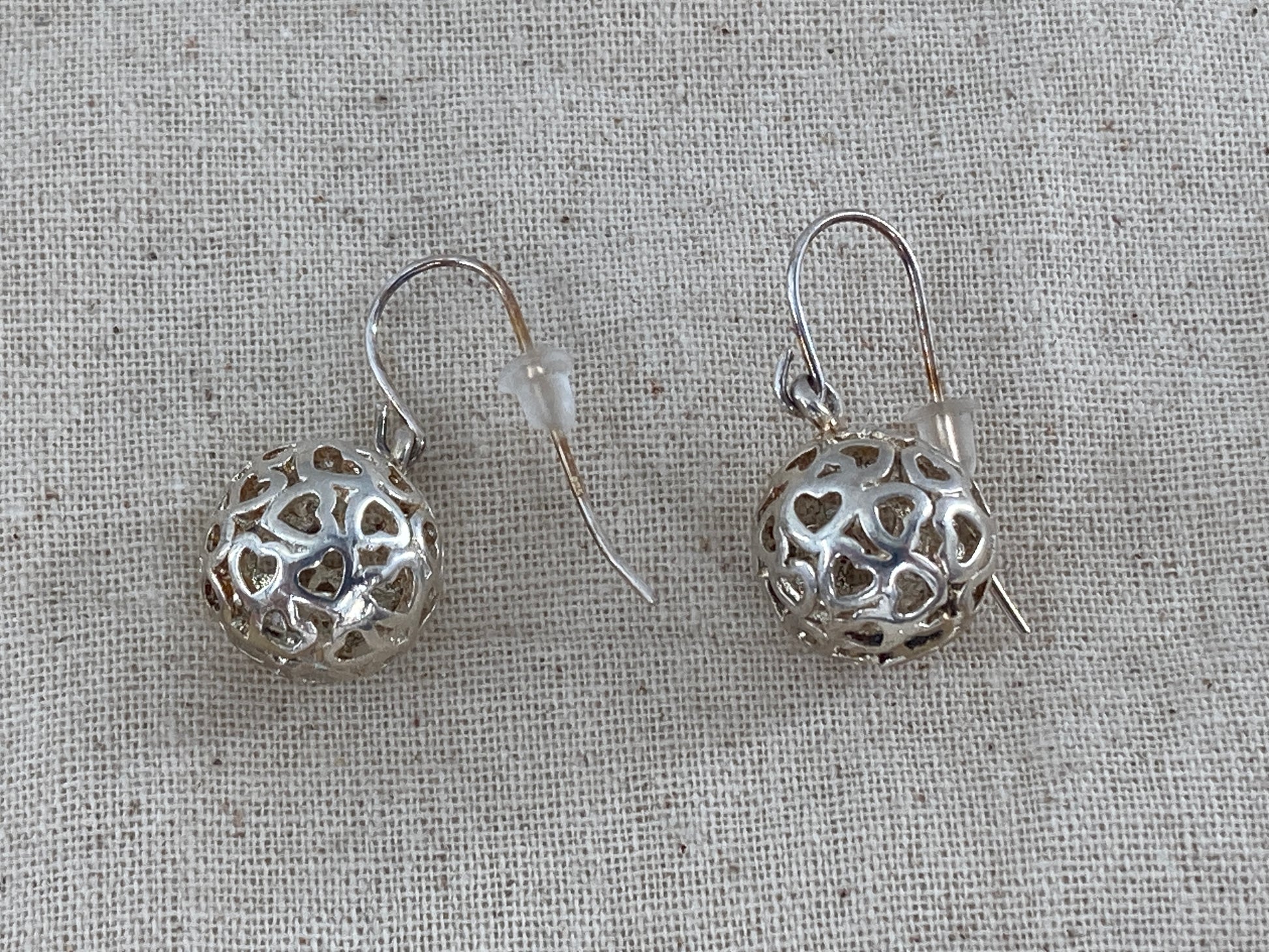 These sterling silver balls are made up of little hearts to form a little cage. The balls were part of a bracelet that came to us broken. We decided to make a few pairs of earrings, different styles with them.... so be on the look out for the other Cage's of Love out there!