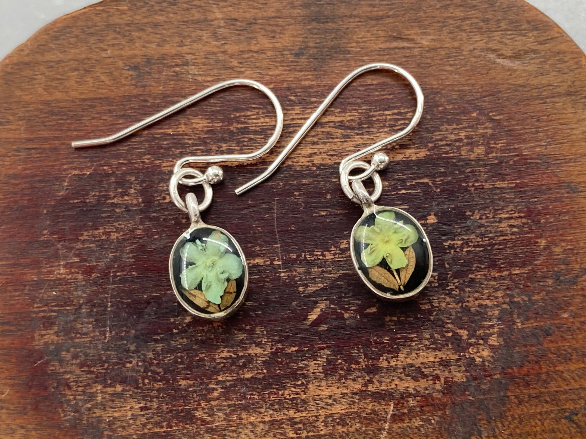 These earrings originally made up a beautiful 2000's bracelet that was broken beyond repair before finding its way to us. We decided to take the few remaining pieces and hang them from Sterling Silver French Hook ear wires. These earrings feature green flower. Look for the other pairs that are out there. Some have 1 flower, some have 2.