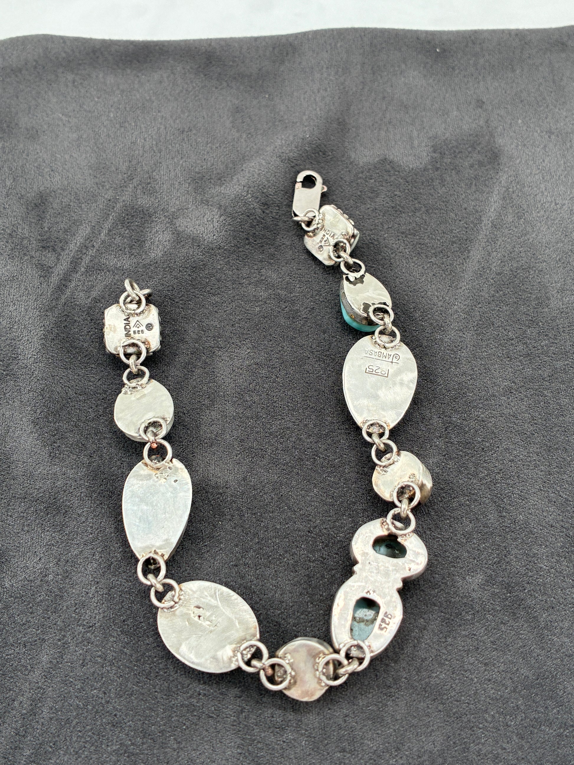 This Sterling Silver bracelet measures 8 1/8 inches long and weighs in at 25.5 grams.