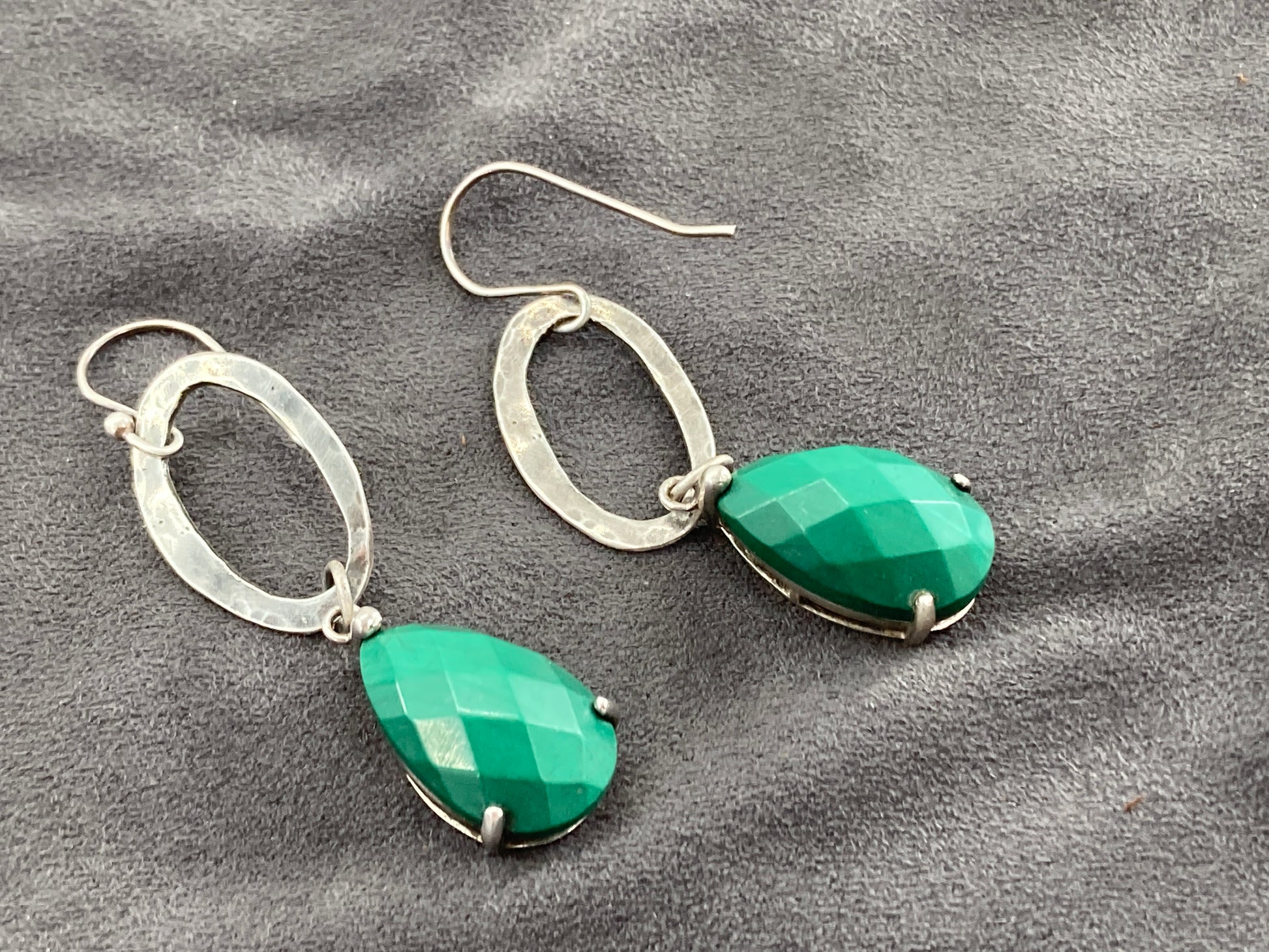 These Malachite earrings came to us one at a time a few months a part. We paired them up and gave them new French Hook ear wires. They have a lot more swag then they did as post earrings! These babies weigh in at 7.25 grams.
