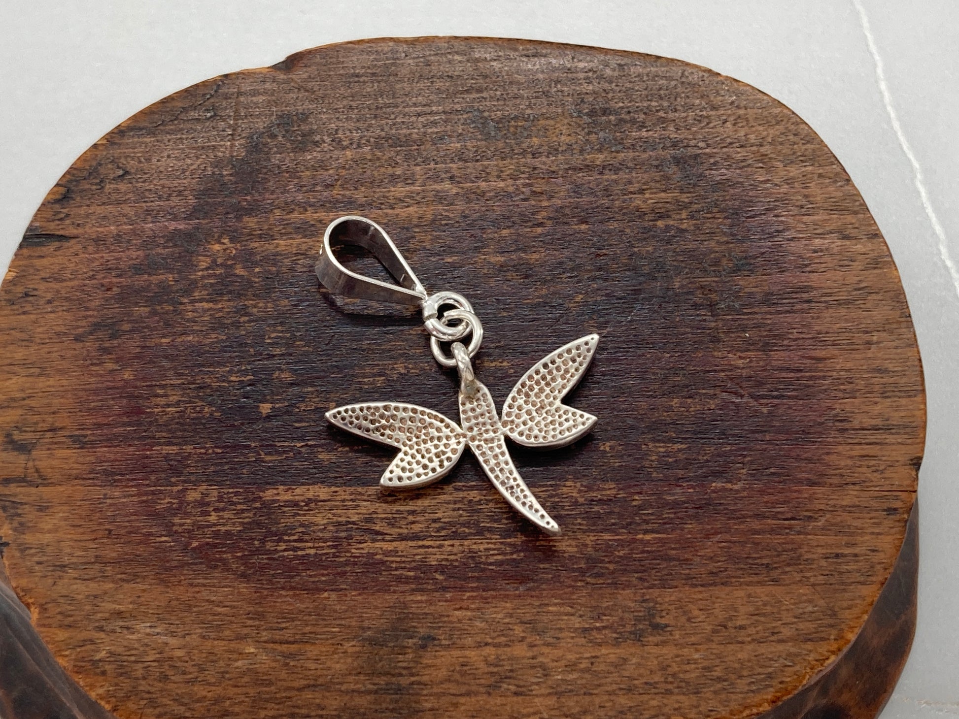 This Opalite Dragonfly was once part of a bracelet. Broken in two places, we decided to take the rest of the bracelet apart and make them into this pendant and matching dangling earrings (in a separate listing). Opalite in sterling silver dragonfly, with a jump ring and a rescued sterling silver bail.