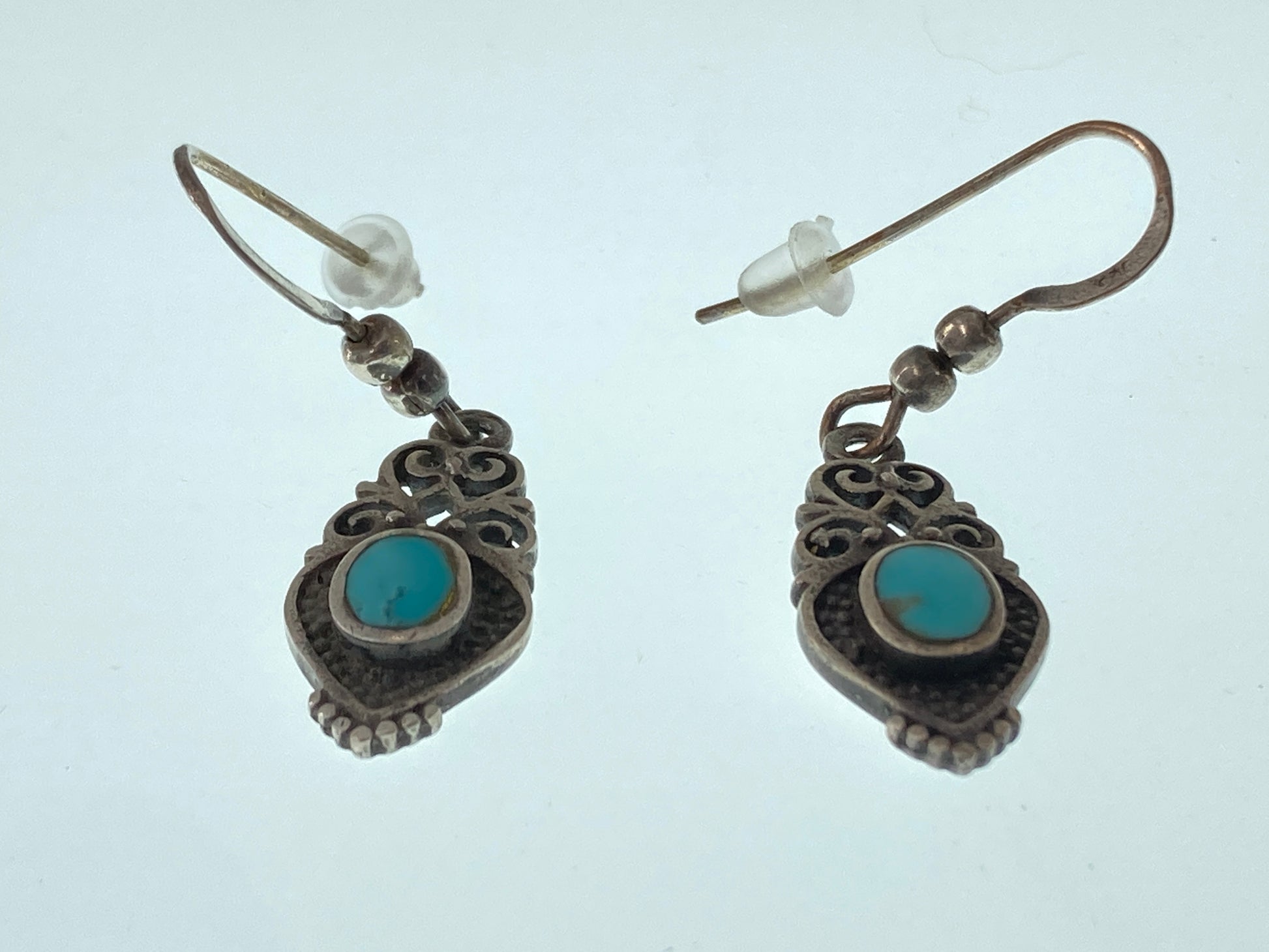 These Turquoise earrings came broken without any ear wires. We cleaned them up and paired them with timeless French Hook ear wires to give them some more life.