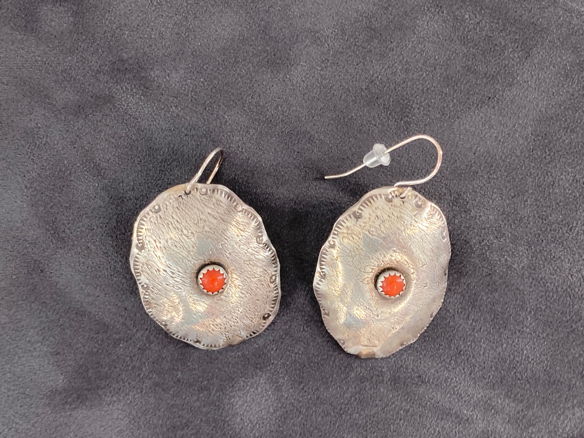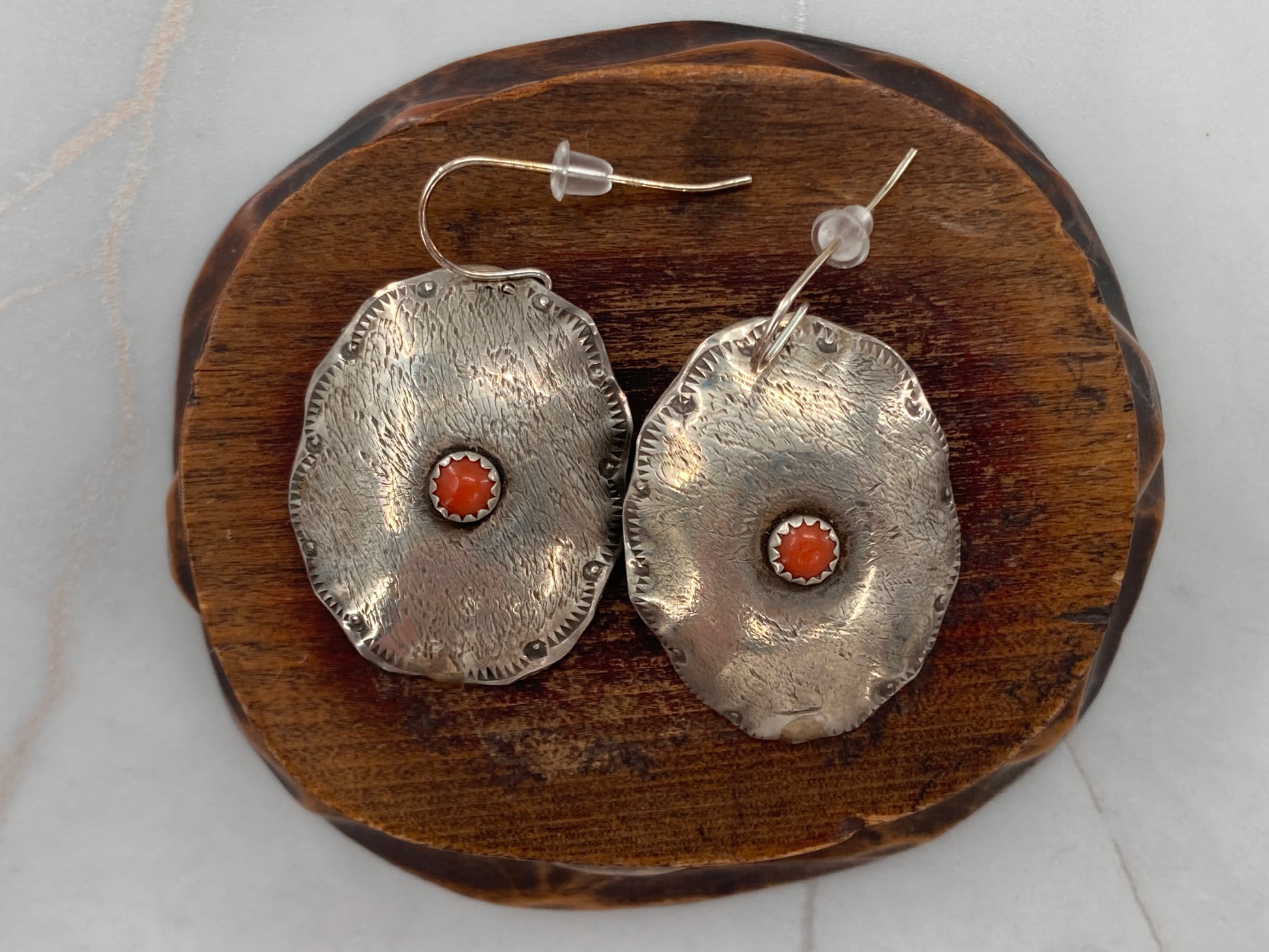 These earrings are made of sterling silver French Hook ear wires and rescued conch belt links. Each conch belt link sport a small Red Coral stone. Beauty!